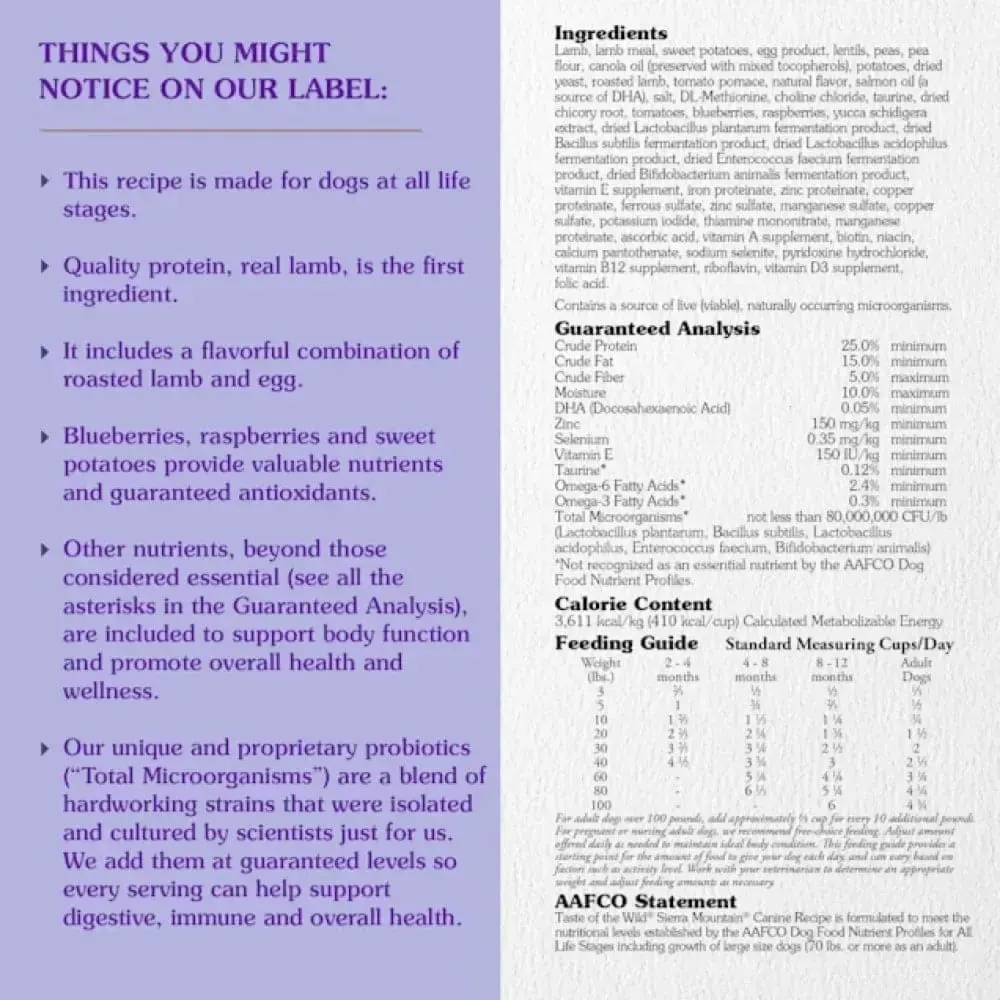 Indulge your canine companion with the exceptional flavors of Taste of the Wild Dry Dog Food Sierra Mountain Canine – Roasted Lamb. Meticulously crafted to satisfy your dog’s cravings and nutritional needs, this premium dry dog food is a celebration of wholesome goodness.